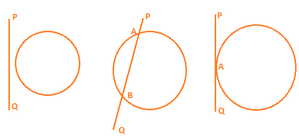 In the figure the line PQ and the circle have no common point. In this case, PQ is called a non-intersecting line with respect to the circle. Continue Learning