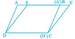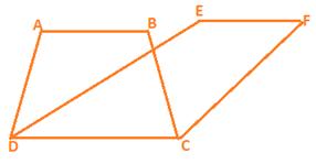 In the given Figure trapezium ABCD and parallelogram EFCD have a common side DC. We say that trapezium ABCD and parallelogram EFCD are on the same base DC.
