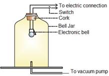 An electric bell and an airtight glass bell jar. The electric bell is suspended inside the airtight bell jar. The bell jar is connected to a vacuum pump When the air in the jar is pumped out gradually, the sound becomes fainter, although the same current is passing through the bell. After some time when less air is left inside the bell jar you will hear a very feeble sound.
