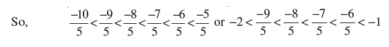 Find three rational numbers between − 2 and − 1.