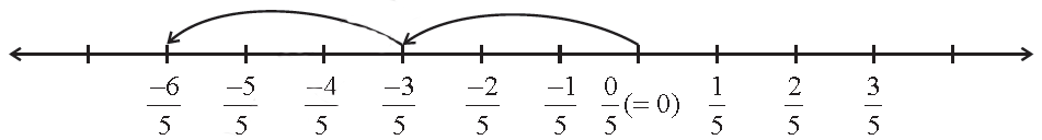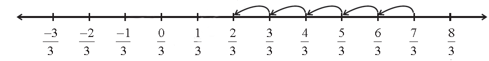 The distance between two consecutive points is 1/3. So adding -5/3 to 7/3 will mean, moving to the left of 7/3, making 5 jumps, and We'll reach at2/3.
