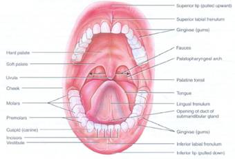 The tongue is a fleshy muscular organ attached at the back to the floor of the buccal cavity. It is free at the front and can be moved in all directions.