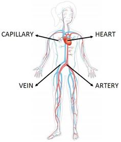 There are two types of blood vessels, arteries and veins are present in the body. Arteries carry oxygen-rich blood from the heart to all parts of the body. The number of beats per minute is called the pulse rate. A resting person, usually has a pulse rate between 72 and 80 beats per minute.