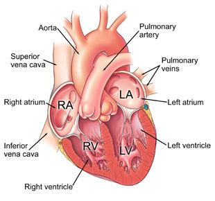 The heart is located in the chest cavity with its lower tip slightly tilted towards the left.