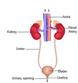 When the blood reaches the two kidneys, it contains both useful and harmful substances. The useful substances are absorbed back into the blood. The wastes dissolved in water are removed as urine. From the kidneys, the urine goes into the urinary bladder through tube-like ureters. It is stored in the bladder and is passed out through the urinary opening at the end of a muscular tube called urethra.