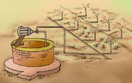 Drip system : In this system, the water falls drop by drop directly near the roots. So it is called drip system.
