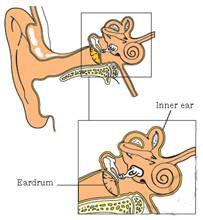 The eardrum is like a stretched rubber sheet. Sound vibrations make the eardrum vibrate. The eardrum sends vibrations to the inner ear. From there, the signal goes to the brain. That is how we hear.