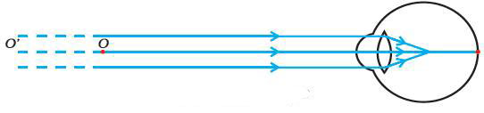 For a young adult with normal vision, the near point is about 25 cm. The farthest point upto which the eye can see objects clearly is called the far point of the eye. It is infinity for a normal eye. You may note here a normal eye can see objects clearly that are between 25 cm and infinity.