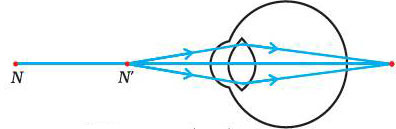 Hypermetropia is also known as far-sightedness. A person with hypermetropia can see distant objects clearly but cannot see nearby objects distinctly. The near point, for the person, is farther away from the normal near point (25 cm). Such a person has to keep a reading material much beyond 25 cm from the eye for comfortable reading. This is because the light rays from a close by object are focused at a point behind the retina.